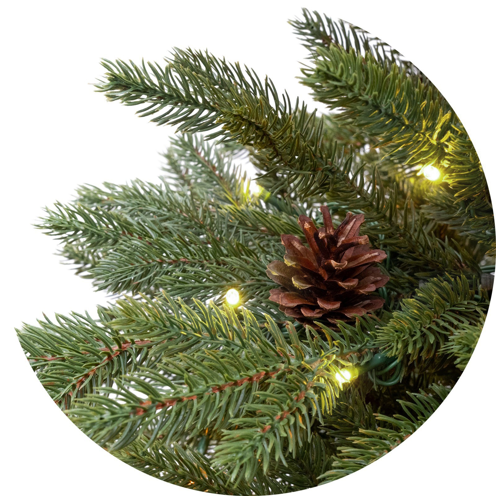 Choinka została starannie zaprojektowana, by spełnić oczekiwania nawet najbardziej wymagających klientów i jak najlepiej odwzorować naturalne drzewko. Jej charakter podkreślają dołączone naturalne szyszki, które można samodzielnie zamontować, nadając choince autentyczny wygląd. To wyjątkowo gęste i puszyste drzewko, które doskonale oddaje naturalne piękno leśnego świerka.