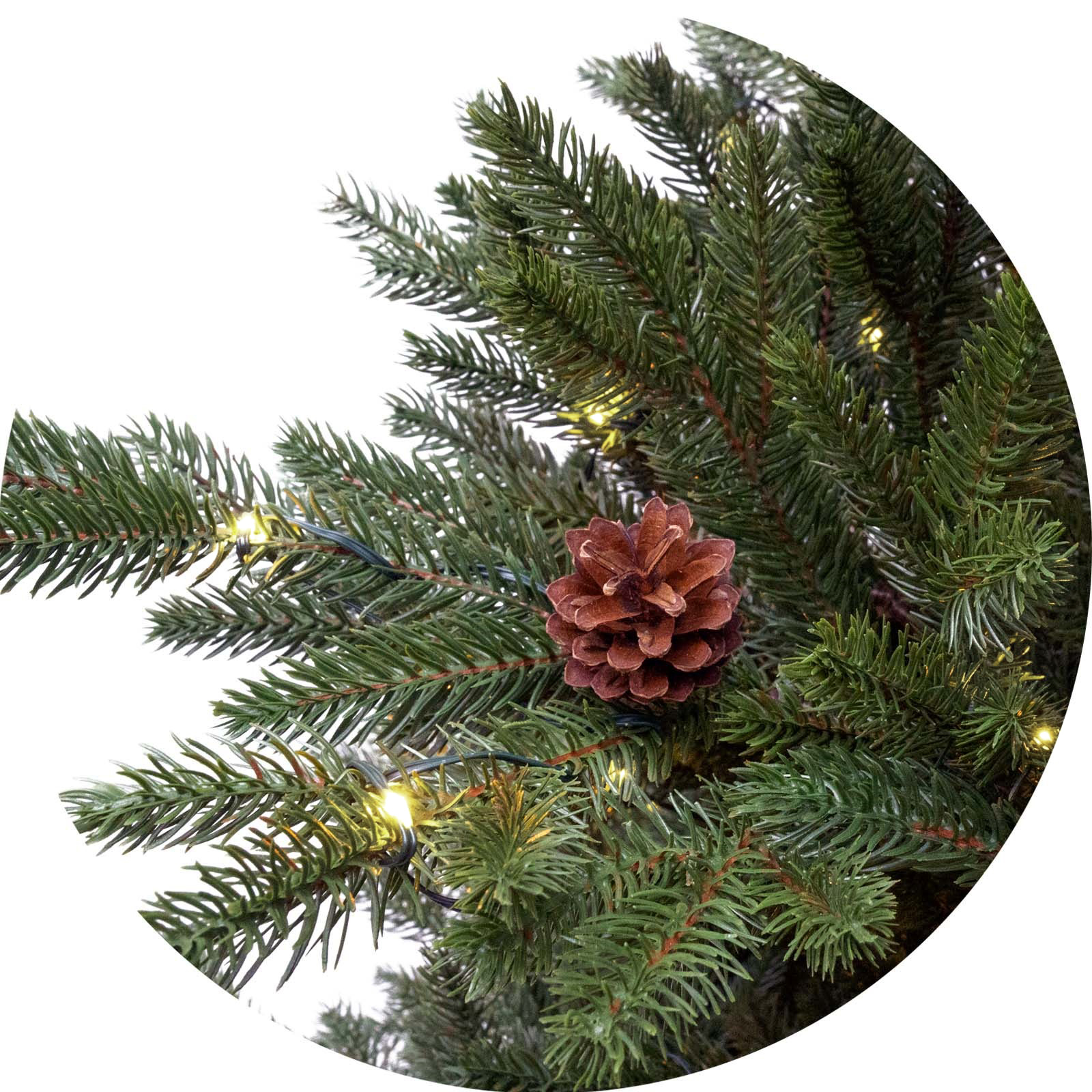 Choinka została starannie zaprojektowana, by spełnić oczekiwania nawet najbardziej wymagających klientów i jak najlepiej odwzorować naturalne drzewko. Jej charakter podkreślają dołączone naturalne szyszki, które można samodzielnie zamontować, nadając choince autentyczny wygląd. To wyjątkowo gęste i puszyste drzewko, które doskonale oddaje naturalne piękno leśnego świerka.