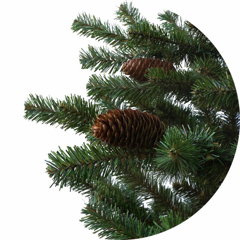 Choinka została starannie zaprojektowana, by spełnić oczekiwania nawet najbardziej wymagających klientów i jak najlepiej odwzorować naturalne drzewko. Jej charakter podkreślają dołączone naturalne szyszki, które można samodzielnie zamontować, nadając choince autentyczny wygląd. To wyjątkowo gęste drzewko, które doskonale oddaje naturalne piękno leśnego świerka.